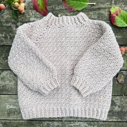 The Cotswold Sweater is the perfect cozy pullover for chilly days. It reminds me of something a shepherd or shepherdess might wear here in the Cotswolds while tending to their sheep. The stitch pattern used in the design is the lemon peel stitch. If you are not familiar with it, you are in for a treat. It is so easy and looks incredible using only single and double crochet stitches. The sweater is worked from the top down, starting with the collar. The sleeves are stitched directly onto the finished body of the sweater which means no seaming. The timeless style and gender neutral design make this sweater one you will want to make over and over again. I have designed the sweater to be oversized so keep this in mind when picking the size you want to make. Lulu is 10 months and wearing size 1-2. Make sure you check out the matching Cotswold Bonnet.