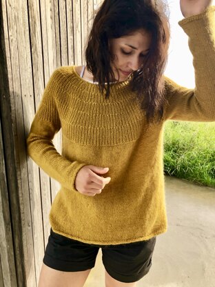 The Cryptogram Sweater is worked top down in the round. Short -rows are worked to make the back fit better. Rib design is worked all over the Yoke through a simple combination of knit and purl stitches - that all together looks like some kind of round Cryptogram or Secret code. After Yoke is finished sweater is worked in Stockinet stitch with a some increasing and more Short-rows to a give better fitting shape end with I-Cord Bind - off method. Body and Sleeves are worked in Stockinet stitch down to the bottom edge then finished with an I-Cord bind-off. The Cryptogram Sweater can also be worn inside out : the Yoke will be the same on both sides, but body will depend on what you will choose: in Stockinet stitch or in Garter Stitch Cryptogram Sweater is knitted with two strands of yarn held together.