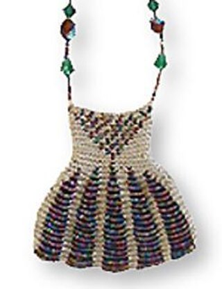 A sweet little beaded knit amulet purse necklace pattern featuring a pretty dress-shaped design with a dotted bodice. Purse measures 2 x 2 1/2 inches when completed. Necklace strap measures 30-36 inches (your choice) composed of matching accent beads. Supplies to make this amulet purse includes 0000 knitting needles, size 11/0 seed beads and size 8 pearl cotton thread. Make it in white for a wedding! Available in PDF form here or published in “Beaded Knit Amulet & Coin Purse Patterns” by Renee Gomez-Smith.