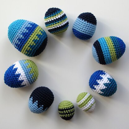 THE EGG is a pattern for Amigurumi crochet eggs in 4 different sizes with pattern suggestions for color work to create beautiful crochet Easter eggs.