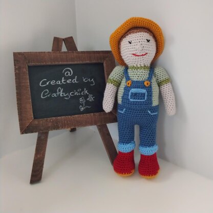 When the Farmer is made using the specified materials he stands at about 32cm tall.