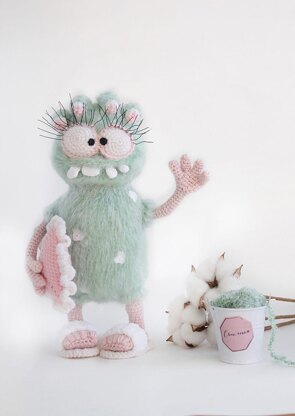 In this pattern I will show you how to crochet a funny flea that will cheer up you and the people around you. The idea came up accidentally. We all know how we girls look like in the morning? . Right! We are beautiful, wearing make-up, and in curlers. For those, who do not know yet, the flea also loves to take care of herself. I am sure it will become the best and one of the funniest gifts for any holiday It is a total crochet toy. In her wardrobe, she has curlers, a soft pink pillow-heart, and house slippers. The pattern consists of 36 pages and contains over 100 photographs and charts. The funny flea using the materials stated in this pattern is 10.4’’-26.5 cm tall.