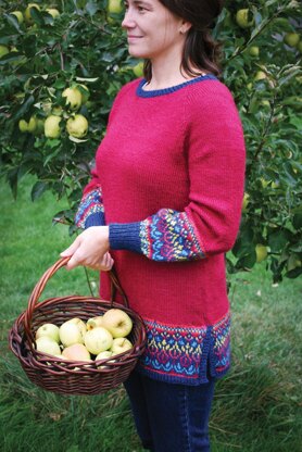 The colourwork on the body is steeked on each side to create side slits for a tailored finish and ease of movement at the hips.