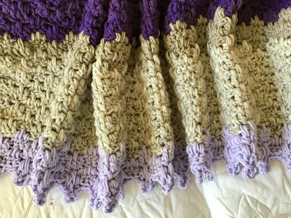 Bring a touch of French style to your home with The French Lavender Throw. Chic and textured. Completely reversible. Fits any decor in any room. Simple crochet stitches throughout. CARON BRAND ONE POUND YARN USED IN THIS PATTERN.