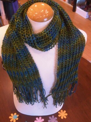 • Light worsted or DK yarn 200 metres. • Needles: 5mm • Gauge: Not important • Glass beads for fringe