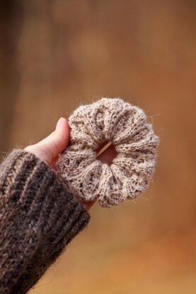 "A delicate bloom of stitches, The Honeysuckle Scrunchie is a dreamy little knit designed to feel as beautiful to make as it is to wear. Encrusted with airy lace and softly gathered into a romantic silhouette, it turns fine sock-weight yarn into something truly special—light, elegant, and quietly striking."