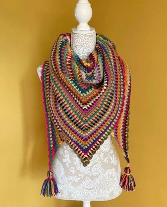 Crochet Boho & beautiful, this shawl is a statement piece that will grab attention. fabulous accessory to any outfit. Easy to make up, great pattern to follow simple guide to building your scrapcake UK/US terms. Great for any level crocheter.