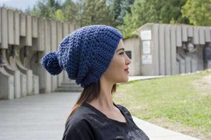 A soft slouchy ski hat with a fashionable design that is fit for wearing for both men and women. Big pompom on the back for extra dapper!