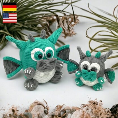 The finished dragons will be about 17cm and 12cm. Of course, the size can vary depending on whether you crochet tight or loose. The choice of wool is also important. I crochet with cotton yarn 4 ply 125m/50g (100% cotton).