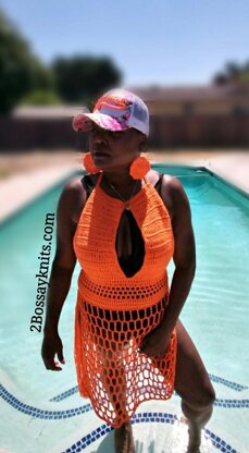 With 1 half crop top, the other half lacy and airy stitches, this can be made in a matter of no time. Trcs, dcs, and scs are all you need to know how to do to make this piece. The long fringe added to the waistband in the back, will have you turning heads at the beach, pool, or where ever you are.