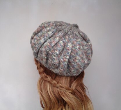 A cross between a tam and a beanie, there is a full gathered section of fabric around the ears.