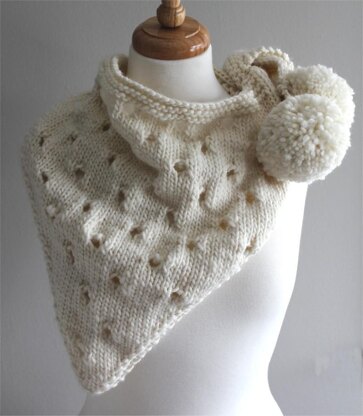 The Lilith Shawl is knit with a US #11 needle at a yarn gauge of 4 stitches per inch. You can knit it in an aran weight yarn for warmth, as shown. Or, you knit this in a lighter weight yarn at the same gauge for a more open spring/ summer style.