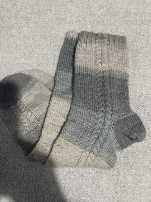Worked cuff down with an easy to memorize cable pattern on the “seams’’. and a sweet purl stitch detail on the body, these socks are a rhythmic, simple knit that seasoned knitters and beginner sock enthusiasts can take joy and comfort in making, no matter the season. Sweet in spring, and cozy in winter, these socks will truly be the “little black dress” for your feet!