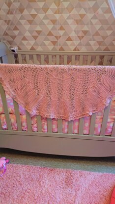 The Lullaby Shawl is a lacy shawl knitted from the center out. Using traditional lacy stitiches, it is sure to become a family heirloom.
