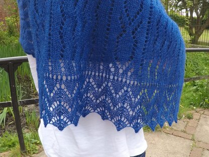 It is a rectangular shawl with fishtail border knitted first, followed by the body section which has columns of mackerel separated by wave lace.After the body section, the second border is grafted on using Kitchener stitch. Full instructions are included as well as a link to my Youtube videocovering the technique.