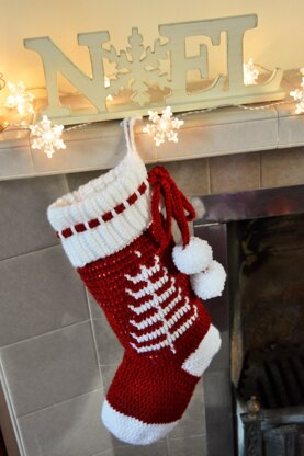 Dream of a Nordic winter wonderland this festive season. This eye-catching Christmas stocking has been designed with a feature Nordic tree motif, chunky ribbing, and a tie-through bow with large pom poms. This stocking will make a lovely feature in any home this festive season and makes a loving gift or keep one for yourself.