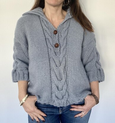 You will need: 700 (750, 800, 850, 925, 1050, 1200) yards of chunky weight yarn US #10.5 straight needle (or size needed to obtain gauge) Cable needle (CN) Stitch markers 3 buttons ½ or ¾” diameter