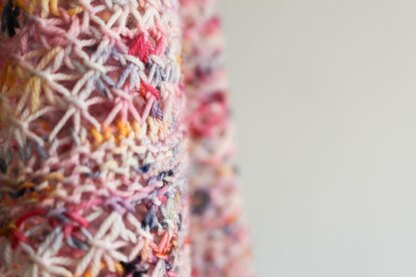 The One is a semi-circular shawl that grows with stripes of lace and garter stitches. Choose a fancy speckled yarn for fun result or a dark tone for an elegant look.