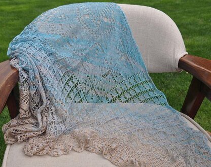 The Owl is an overly generous sized Faroese shaped shawl, knit from the top down with a knitted on lace border. This shawl is comprised of a center lace panel surrounded by two wings. It is constructed by knitting from two separate charts at the same time. If you are using written directions these charts have been combined.