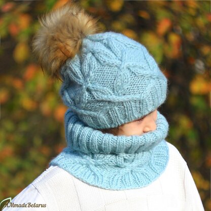 Pattern includes written instructions as well as charts. The cabling pattern is not overly complicated, but there is some adjusting of the stitch marker to ensure that the cabling pattern stays seamless throughout. I would consider this a pattern suitable for intermediate knitters. Instructions are given for you to make four sizes cowl: Child Single Wrap - 16.75’’ wide x 8’’ tall Child Double Wrap - 40’’ wide x 8’’ tall Adult Single Wrap - 19.25’’ wide x 9’’ tall Adult Double Wrap - 52’’ wide x 9’’ tall and two sizes hat: child (20-21 inches head circumference) adult (22-23 inches head circumference)
