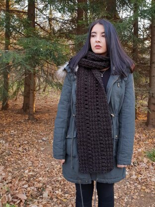 A lovely classic scarf with nice texture. The even moss stitch and puff stitch together create this unforgettable look.