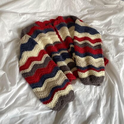 Super fun sweater made up using the ripple stitch, with a scalloped neckline and two options for sleeve finish - balloon or open, included with the open sleeve finish is instructions on how to cinch the sleeve.