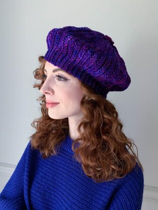 Like waves crashing on the shore, each coming in right after the next, the side to side layers of this crocheted beret swirls around a single crochet button at the peak.