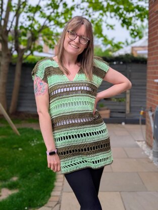 Yarn Est. is based on DK weight cotton yarn and a 6.5mm hook. XS - 210g S - 240g M - 280g L - 310g XL - 340g 2XL - 410g 3XL - 430g 4XL - 470g 5XL - 510g