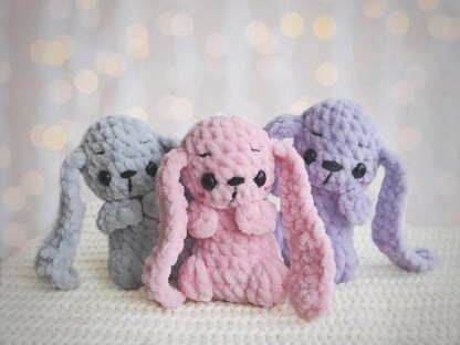 This PDF crochet Easter bunny pattern includes 11 pages with step by step instructions in English (US terms) and photos so you can crochet your own small plush bunny.