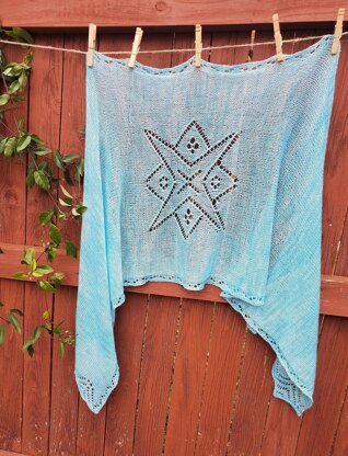 Sample shown in: Chicken Coop Dyeworks Butterfly Lace (80% SW Merino/20% silk; 875 yd/100g) in “Texas Sky”, 1 skein