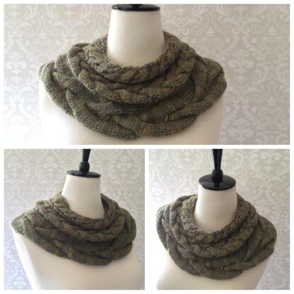 If you would like to add more cable repeats to make the cowl more slouchy you will require appox 12.5g / 0.4oz, 22yds / 20m of yarn per repeat.