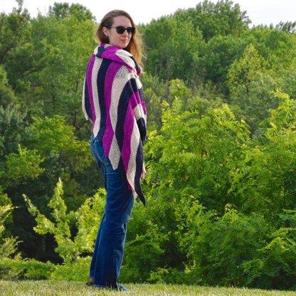 This stripey shawl is starts at one corner and gradually increases to an asymmetrical triangle. Two colors ease into relaxing garter stitch – albeit with some zigzags – while a third evolves into a mesh lace for knitting and visual interest. A jagged edge represents the sisters’ difficult lives, the chevron at the top their desire to go back to Moscow. The pattern also includes instructions for how to adapt to less or more yardage, meaning you can maximize your available yarn.
