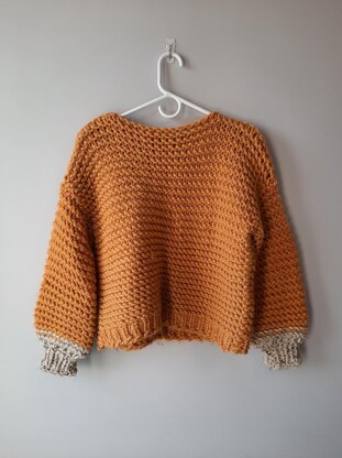 ABOUT THE PATTERN -Simple sweater and is a perfect entry point into loom knitting clothes for beginners -Made by creating 4 flat pieces - 1 front, 1 back, and 2 arms - and joining them together with an easy and fast crochet joining method -Easy enough for beginners but still fun enough for more advanced loom knitters -Includes instructions for one color or the two color scheme as seen in the photos -Scroll to the last photo to see the dimensions of each size and yards needed