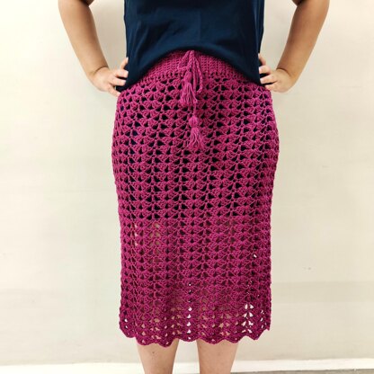 The Weekend Skirt has been inspired by the wait for it.. the Weekend!! All you need is 1 weekend to crochet this skirt. The pattern is an easy 1 row repeat, that can be done while watching tv or listening to music. It has no sewing. It has an option for shaping, if needed. The skirt does not have fixed sizes, adjustments are given to make it fit you! pick the length you want for this skirt, make it a mini skirt, long skirt, knee length skirt or any length you want.