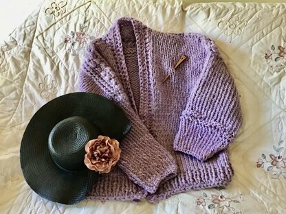 The unique design in The Willshire Lavender Cardigan has a combo of simple knit and crochet stitches for a classic timeless look. Eye catching front and back detail. Suede yarn used in a portion of the sleeves and front band. Buttons are optional.