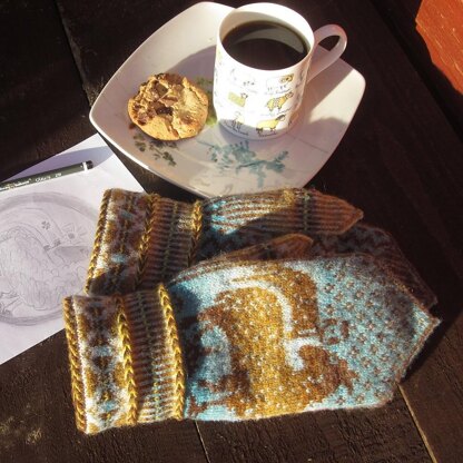 Inside Castle Fraser (Aberdeenshire, Scotland) is a little room, with a woodcarving of a standard-bearer sheep in a recess on the wall. Of French origins, the Fraser family descends from continental settlers, as part of the Norman infiltration in the 12th century. The Scottish standard-bearer sheep is strangely similar to the emblem of a large city in Normandy, France. These cosy mittens link both sheep, as they face each other and proudly stand on the back of the hand.