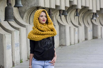 An oversized off-beat infinity scarf that you can wear in three different ways, including as a poncho or a hooded cowl! Look different every day with this warm chunky wrap.