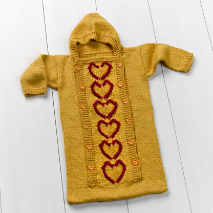 Valley Yarns Thecia is a stunning baby cocoon that will keep your little warm and in style knit in Valley Yarns Haydenville. The cocoon is knit in the round from the bottom up to the beginning of the front opening. The button bands or bands that you can sew twill tape with snaps are incorporated into the piece on either side of the heart cable centre. The hearts can be worked in the same colour as the sack or in a contrast colour using intarsia. Options are included for drop-shoulder sleeves or a sleep sack with no sleeves. Valley Yarns Haydenville is an extraordinarily soft blend of superwash Merino and acrylic microfibre. The cable heart pattern is charted and written out, and the intarsia option is in chart form only.