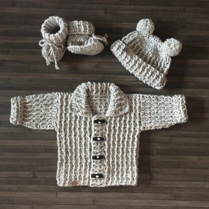 Theo Cardigan Hat and Booties Set Newborn - 10 Years
