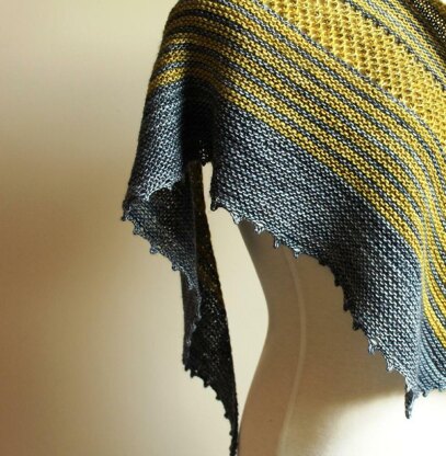 In the midst of several demanding knits, I craved garter stripes, simple eyelets, and picots. It had to be almost mindless, easy to put down and pick up so that I could squeeze it in among other things, and be appropriate for using a variegated yarn with a couple of supporting solids. All these things make this shawl great vacation knitting!