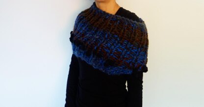 One knit two looks! This comfortable and versatile capelet, convertible into a cowl, is knitted on super-sized needles, offering a chunky and warm feel. This project is an opportunity to use any scrap yarn you have from other projects. Discover the possibilities of mixing fibres, stash busting techniques to coordinate colours, textures for eye-catching combinations to create a unique piece entirely from leftover yarn. Make the most of your yarn collection, no matter how big or small! Knit this for yourself or as a gift for someone special!