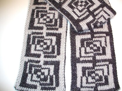This is a slipped stitches double-knit scarf pattern. The pattern contains one (1) chart and simple written stitch instructions. Edge stitch instructions also included.
