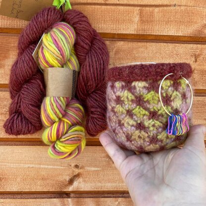 I love yarn bowls and have a whole collection: wooden, ceramic, felted. The old thorn stitch is a perfect way to use one variegated yarn and a contrast solid color. Beautiful colorwork worked simply through some slip stitches, worked in the round. Dimensions: prior felting: 21cm/8.25 in - diameter( wide) , 22.5cm/8.85in tall After felting: 12cm/4.85 in wide, 12 cm/4.85 in tall (with brim folded). There’s no science in felting this, just a wild pleasure in throwing something in hot water washing cycle on purpose! You might need to have it in the hot wash a few times, depending on your machine. It should work after the first time, just stretch and shape to the dimensions or desired size, I usually put a small plastic container inside to give it a shape whilst still damp and let it dry. But if you don’t think the felting process was complete, put in the next load of washing.