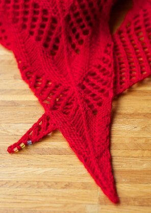 Tulips for the Tulip! Spring is close, and this shawlette is just the thing to get us in the mood: Unusually constructed, simple graphic lace in a bold color and a heavenly soft cashmere blend yarn. Watch stylized tulip blossoms evolve along the center spine as you knit. Fun, simple, and with a great result! The pattern is adaptable to the amount of yarn you have.