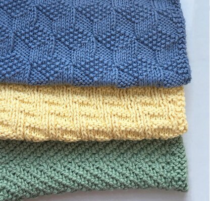 Here are three more practical and beautiful, reversible cloths. They could be used as dishcloths, table mats, or potholders. Or washcloths for your bathroom or guest room. Each one is reversible, so the pattern appears on both sides of the cloth and there is no wrong side to your work!