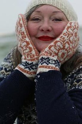 The mittens are knitted in the round from the cuff up. Four sizes are achieved by matching gauge to that for the appropriate size mittens and charted instructions are provided.