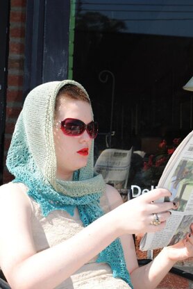 Worked on size 6 needles, but cast on with size 8's this lovely shawl is best shown off using a long, slow color changing yarn. Worked in cottons, silks, or bamboo it has a lovely drape.
