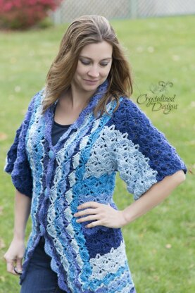 Love the water? This cardigan is for you! The pattern repeat with the combination of Caron Cakes Blueberry Cheesecakes gives the appearance of waves! Rather be somewhere else than the beach? Don't worry, this cardigan looks great in any color with any worsted yarn.