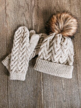 The Tidal Winter set is complimentary to the Tidal Hat Bulky Pattern. With the easy to work, light, wavy cables, this hat and mitten duo work up quickly. The folded brim creates a double brim, sure to keep your ears nice and warm, and the cables add extra warmth for your head and hands.