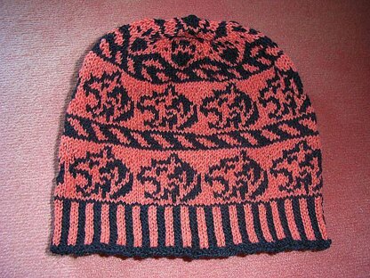 I proudly present: the ultimate tiger beanie! It has tiger faces and tiger stripes all around the brim and a lovely tiger paw pattern with tiger stripes at the top.
